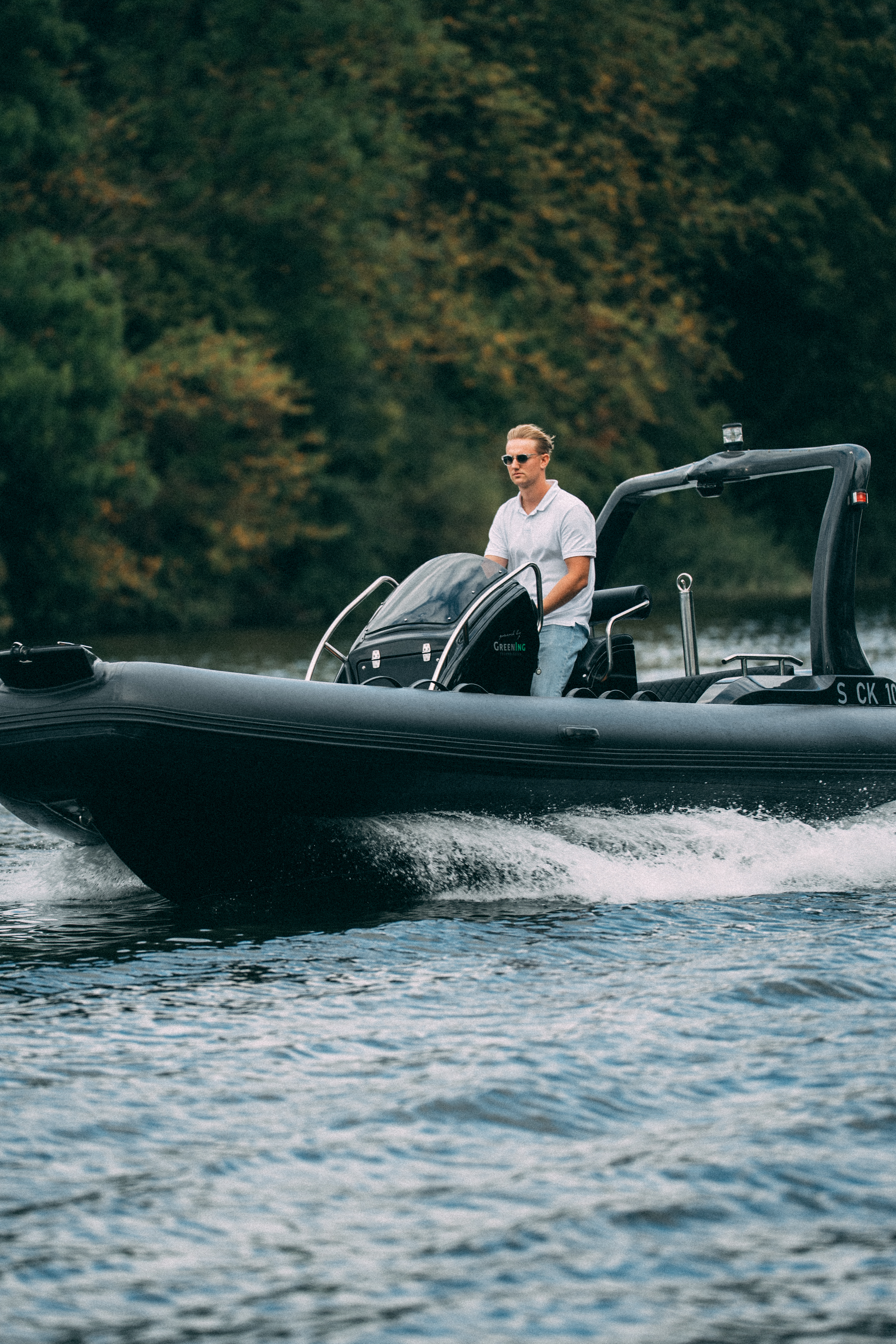 Das vollelektrische 6-Meter-Festrumpfschlauchboot. Sportlich-souverän, leise, emissionsfrei — mit einem 45 kW Spitzenleistungs-Außenbordmotor und 40 kWh LiFePO4-Akku-Pack.